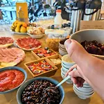 ארוחת בוקר בופה היא מוגשת יום יום במסעדה.